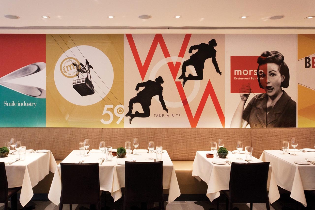 正如餐廳將經(jīng)典意大利菜肴融入當(dāng)代風(fēng)格一樣,我們?yōu)榻?jīng)典外觀增添了新鮮感。由于菜單靈感來(lái)自60年代的菜肴,我們以Pop Art為基礎(chǔ),重新混合顏色和圖像,營(yíng)造出現(xiàn)代意大利風(fēng)格。我們通過(guò)費(fèi)里尼稱之為沃霍爾。