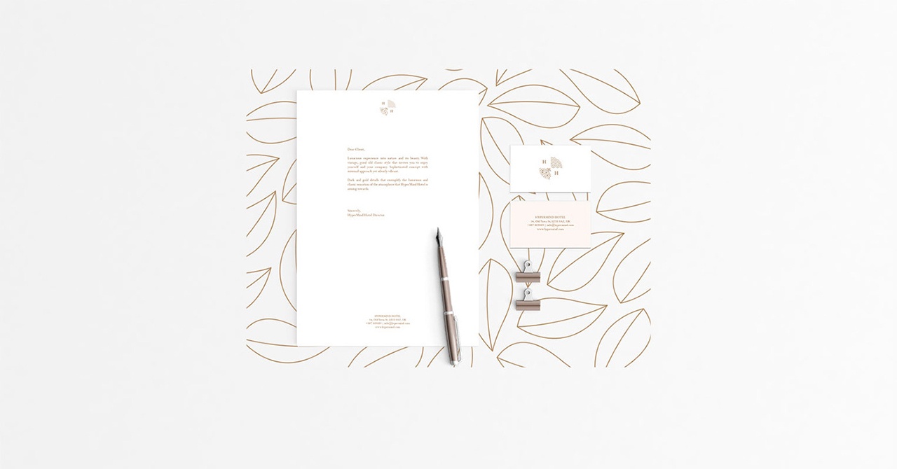 HyperMind Hotel精致的vi設(shè)計、簡約的酒店品牌頁面、靜謐活潑的黑色和金色細節(jié),都在彰顯著 HyperMind 酒店品牌的豪華氛圍和復(fù)古經(jīng)典風(fēng)格,深色和柔和的調(diào)色板,帶來酒店優(yōu)雅、大方的視覺形象,讓人們在這里也可以擁有一段親近大自然的愉快體驗