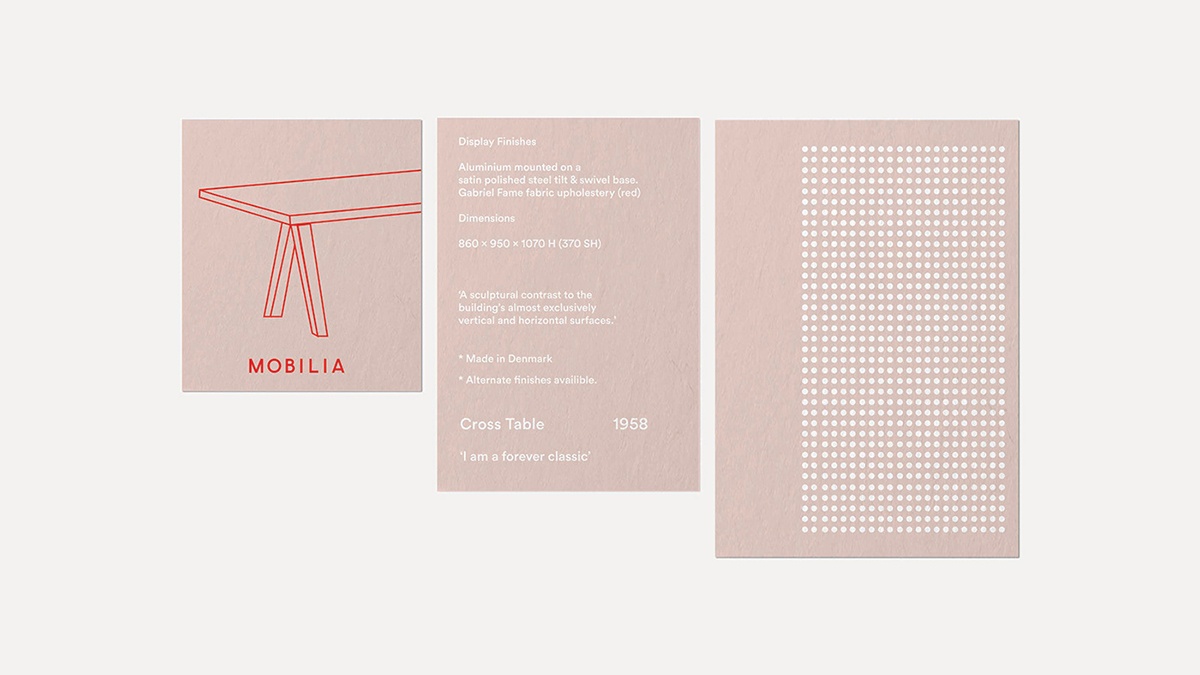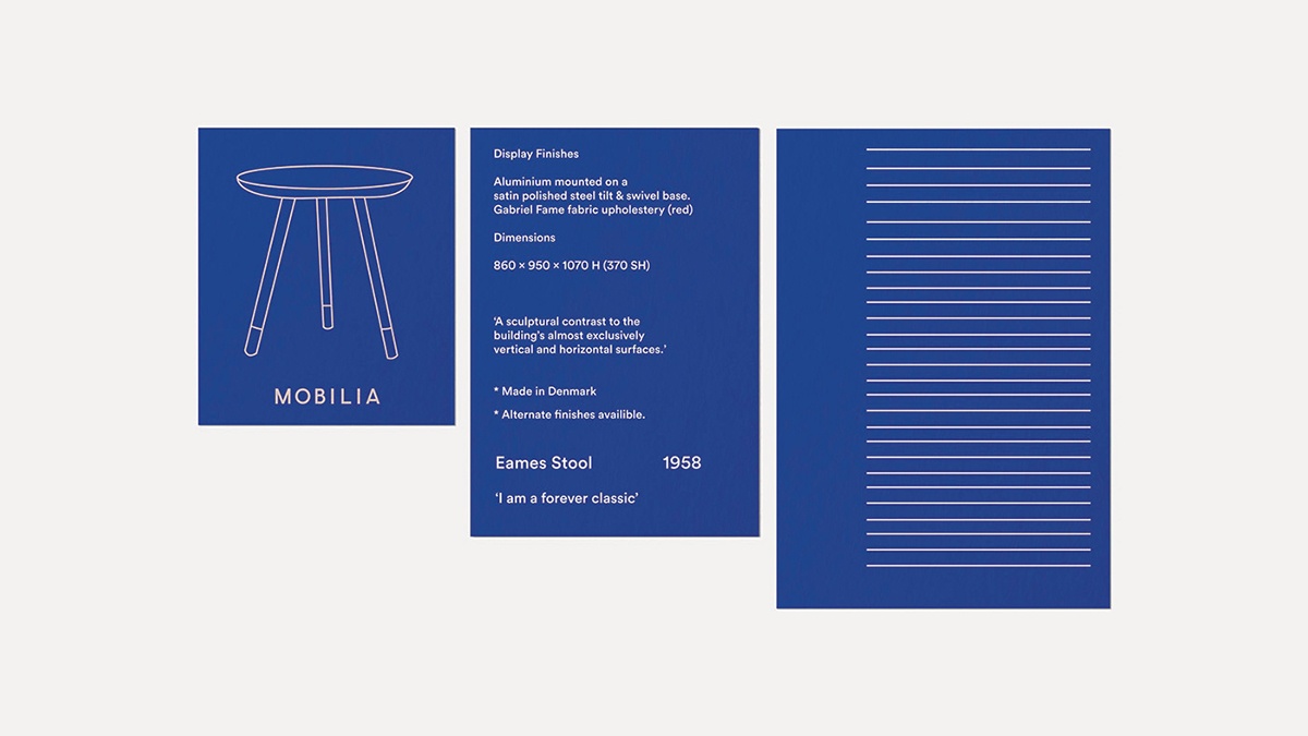 Mob是一家設計師室內設計零售商品牌,其品牌vi設計中需要參考設計師家具中常見的工藝、細節和極簡主義。色調是一種以原色為主色調的裸色和綠色,結合混合蠟筆畫、插圖和手繪字體,為Mobilia塑造了簡約、有趣的品牌形象,讓人感覺很有趣。 為每個家具設計了獨立的搖擺標簽,并基于品牌標識設計了一套品牌符號。 該符號取自字母A中的橋,以及來自Os中負空間的點和傾斜線是字母I,以一定角度放置形成。