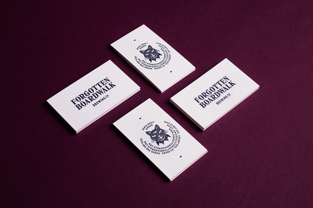 其他亮點包括一個不太熟悉的字體選擇在建立徽標,彎曲的基線和排版的圓型-以及這在凸版名片和杯墊的工作方式-插圖的陰影,這些故事的基礎上和貓尾啤酒輕觸。