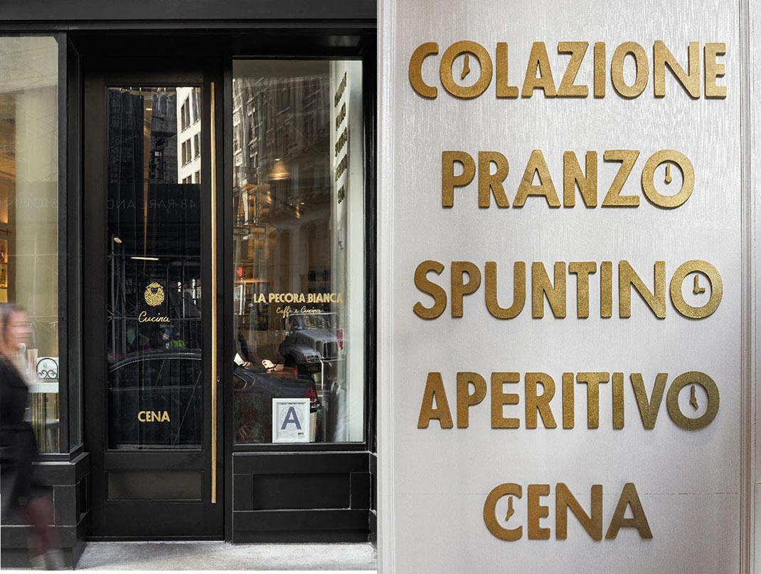 富圖拉的精確幾何形狀讓位于富圖拉帕薩塔更柔和、更粗糙的木刻線條,這是一種參照歐洲咖啡館和餐廳標(biāo)牌的選擇,并在通常的兩種寬度的組合中獲得進(jìn)一步的區(qū)別和特征。這一選擇緩和了主題的直截了當(dāng)?shù)念B皮品質(zhì),但對松散的線條和人性化的品質(zhì)也有類似的偏好。