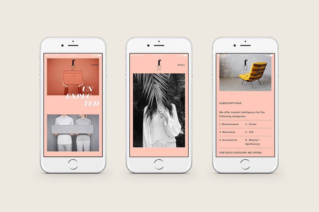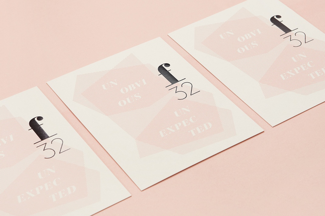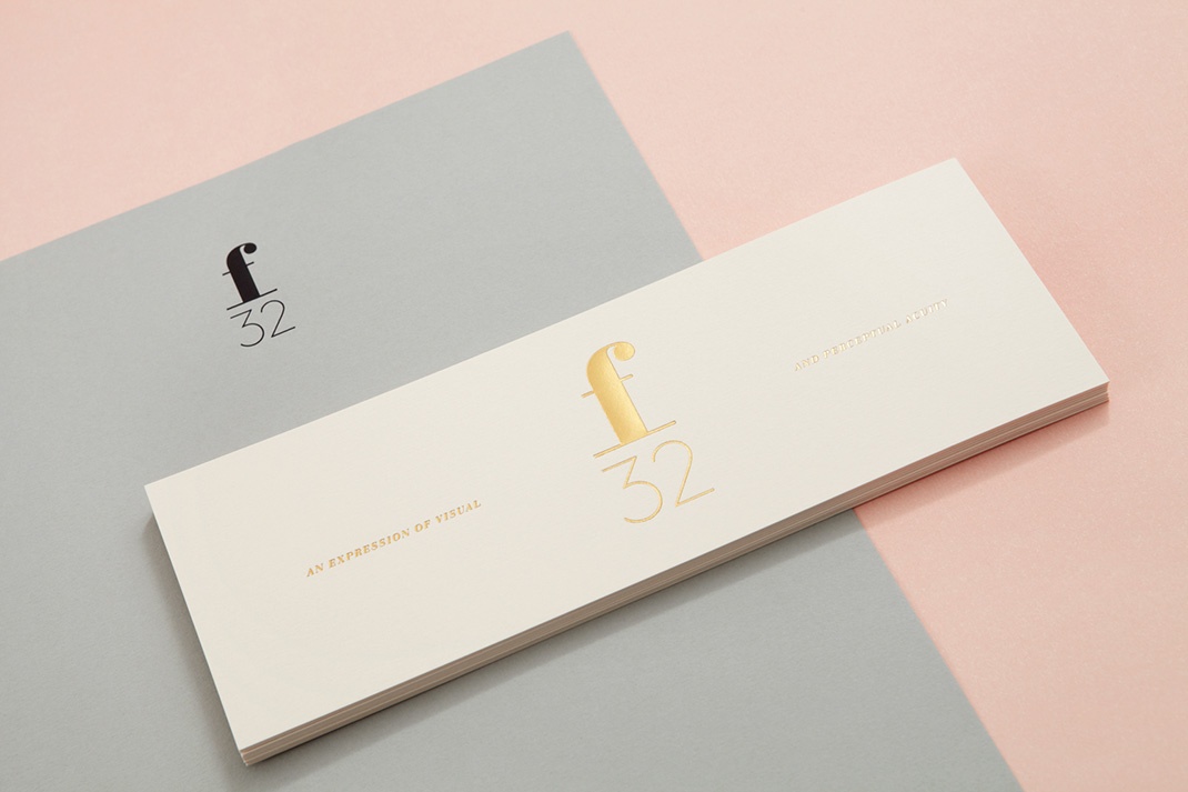 布洛克繪制的F32名稱從攝影詞典,特別是一個設置,提供了最大的景深。在許多方面,視覺身份也有同樣的作用。它追溯過去,跨越海洋,為歐洲平板絲的蓬勃發展,以及向前和國際上的簡化和單線。它配對非常拋光和感覺價值的版箔印刷完成與更個人的品質,一個手印和貼紙。將粉色的女性氣質與經典的奶油和涼爽灰色的都市特質混合在一起。