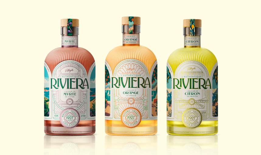 “里維埃拉”是由一款獨特的葡萄酒所代表的品牌,靈感來源于法國南部蔚藍海岸的尼斯。每年夏天,設(shè)計師都會去到這里,與他的祖父一起度過美好的時光,祖父杰拉德非常熱愛自己的生活方式。他每天清晨都會到尼斯標志性的海灘游泳,晚上則從一個舊籃子里拿出自制的利口酒與家人分享。每一瓶利口酒都帶有手寫標簽,上面寫著收獲的年份。酒的種類多種多樣,包括芒通檸檬、弗雷瑞斯橙子和科西嘉香桃木等,每一瓶酒都代表了祖父和家族的記憶。